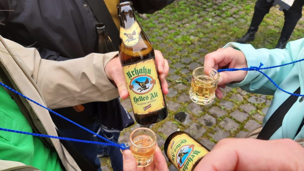 Damit das Hochprozentige nicht zu schwer im Magen liegt, griff dann jeder auch mal auf Anweisung und mit einer Erklärung, um was für ein Bier es sich handelt und welchen Bezug es zur Burgenstadt hat, in seine Umhängetasche.